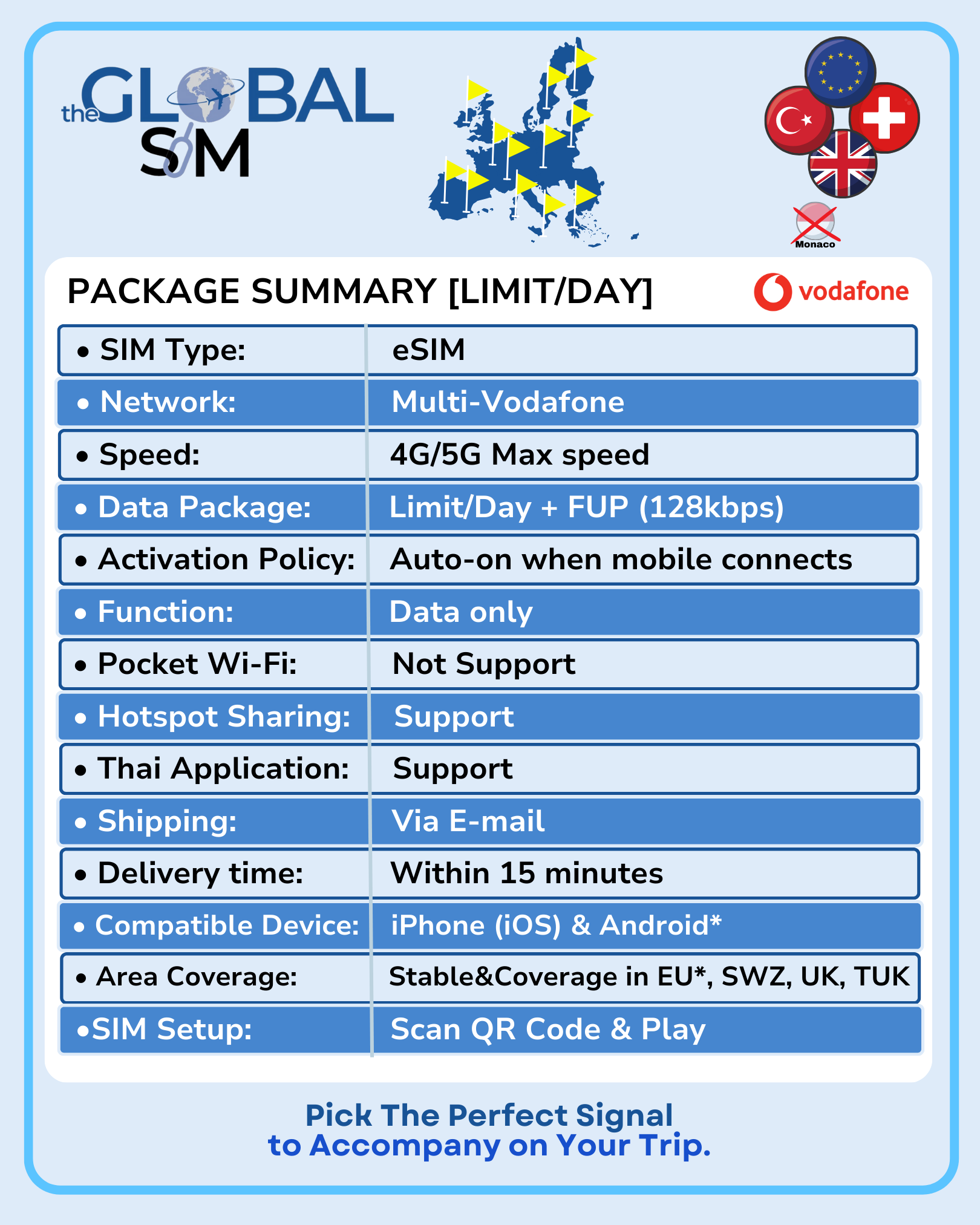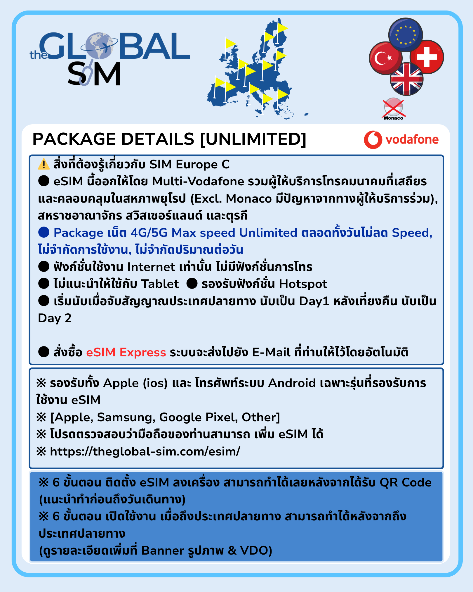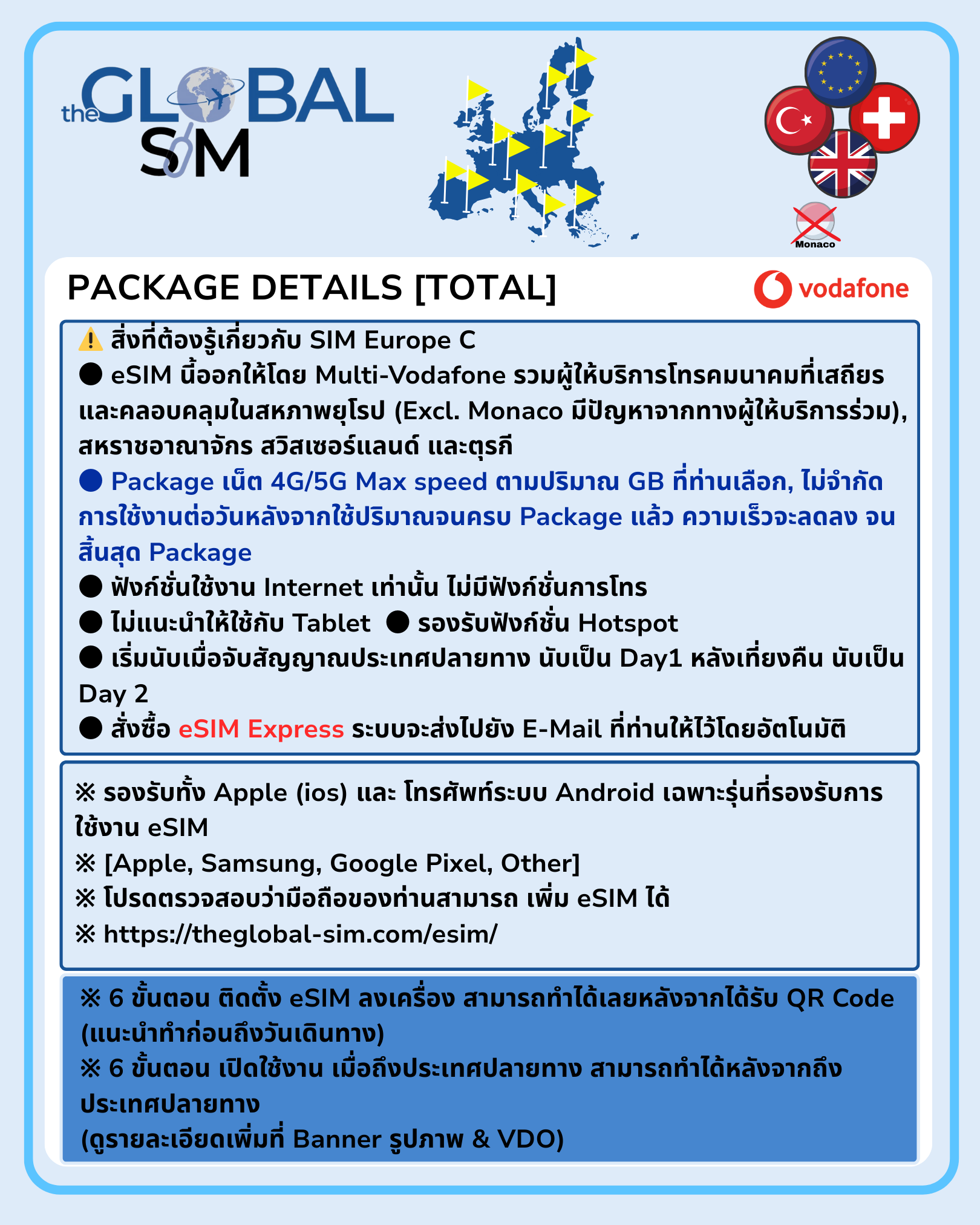 EU, SWZ, TUK& UK eSIM Vodafone + Call