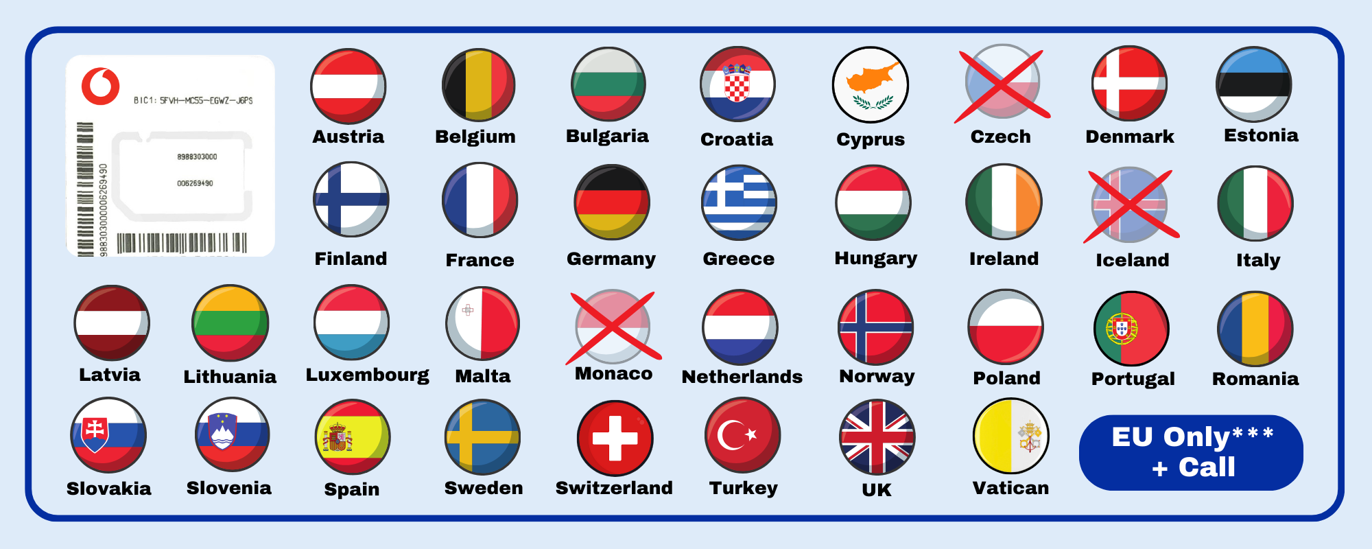 Europe EU Only SIM Vodafone + Call