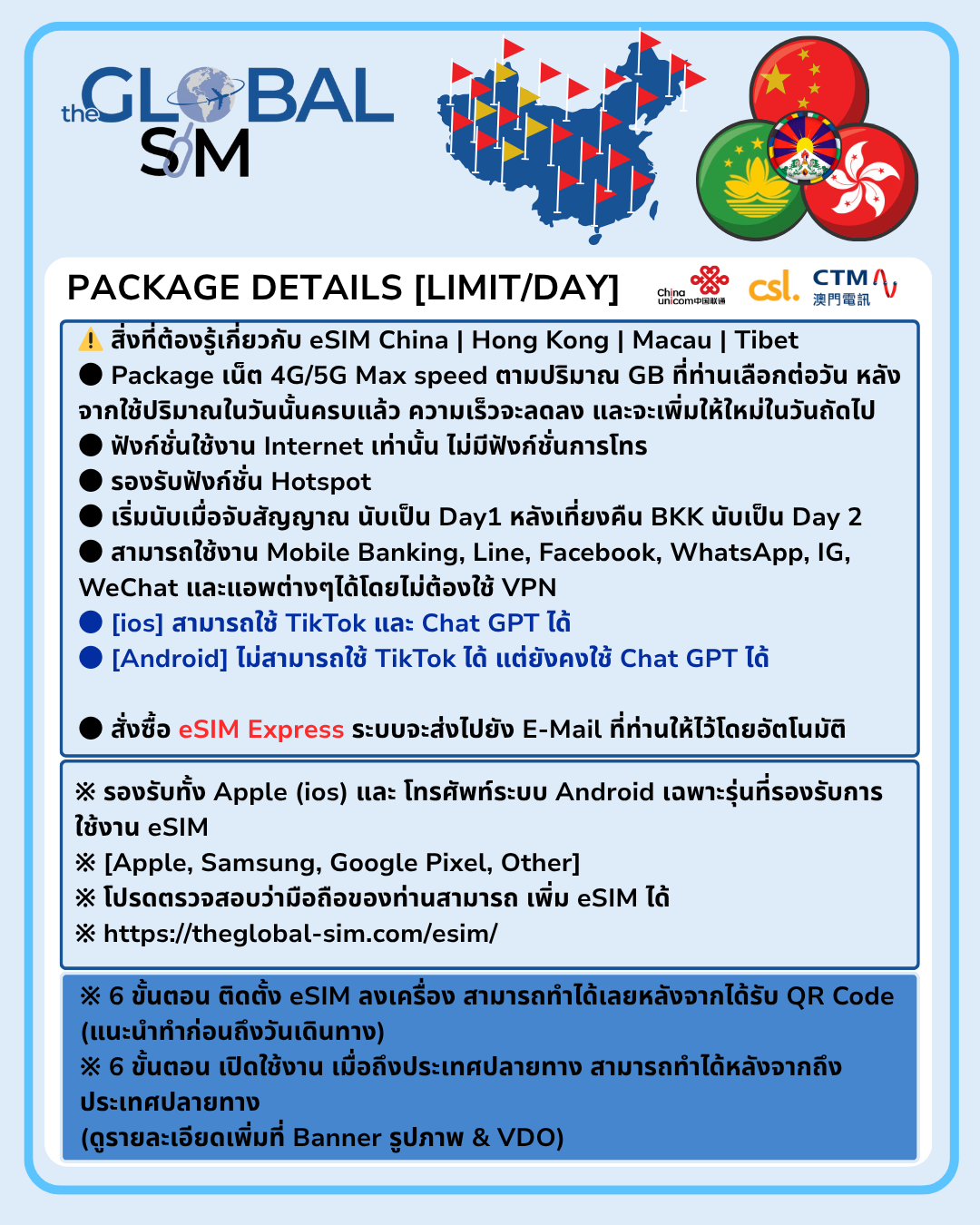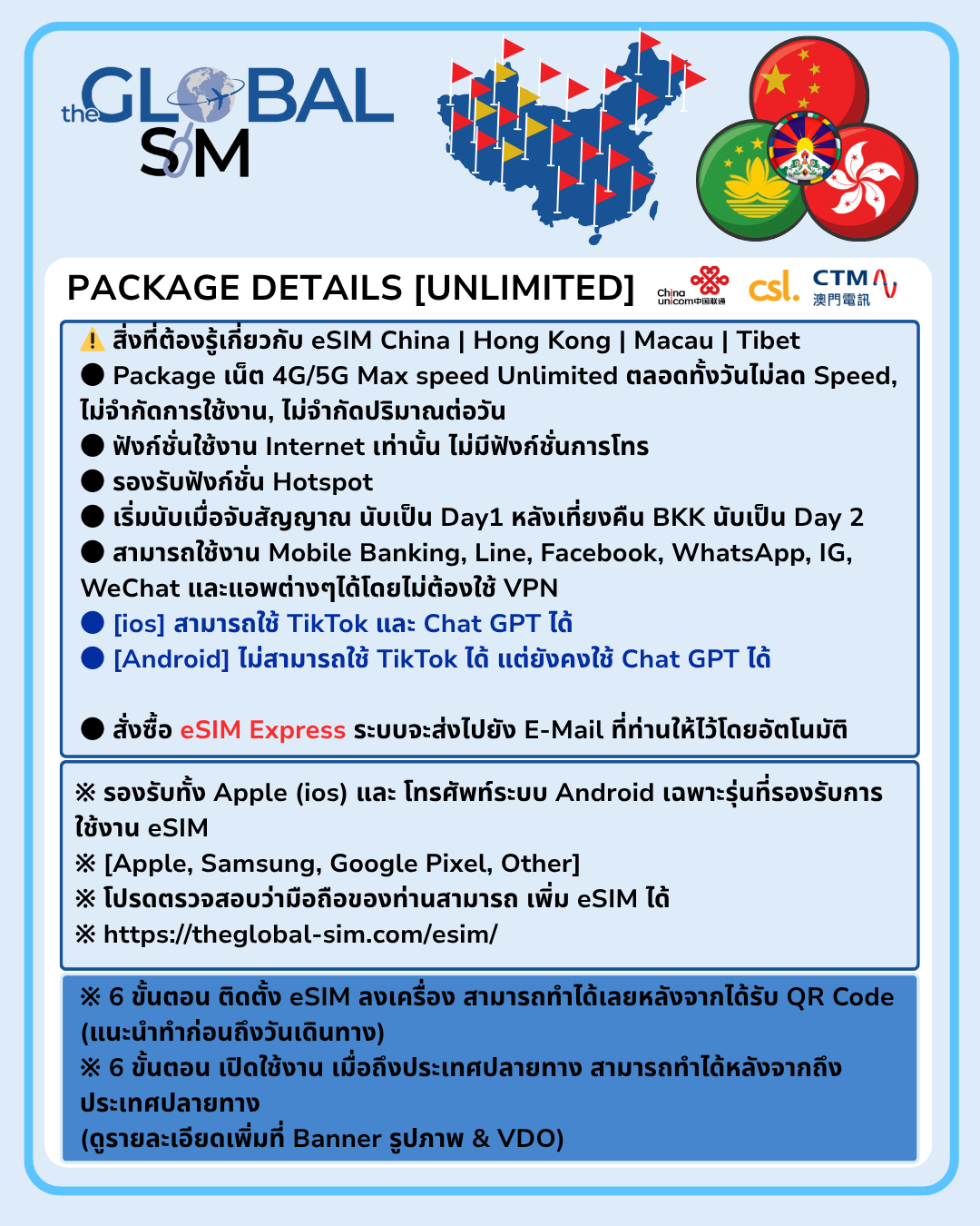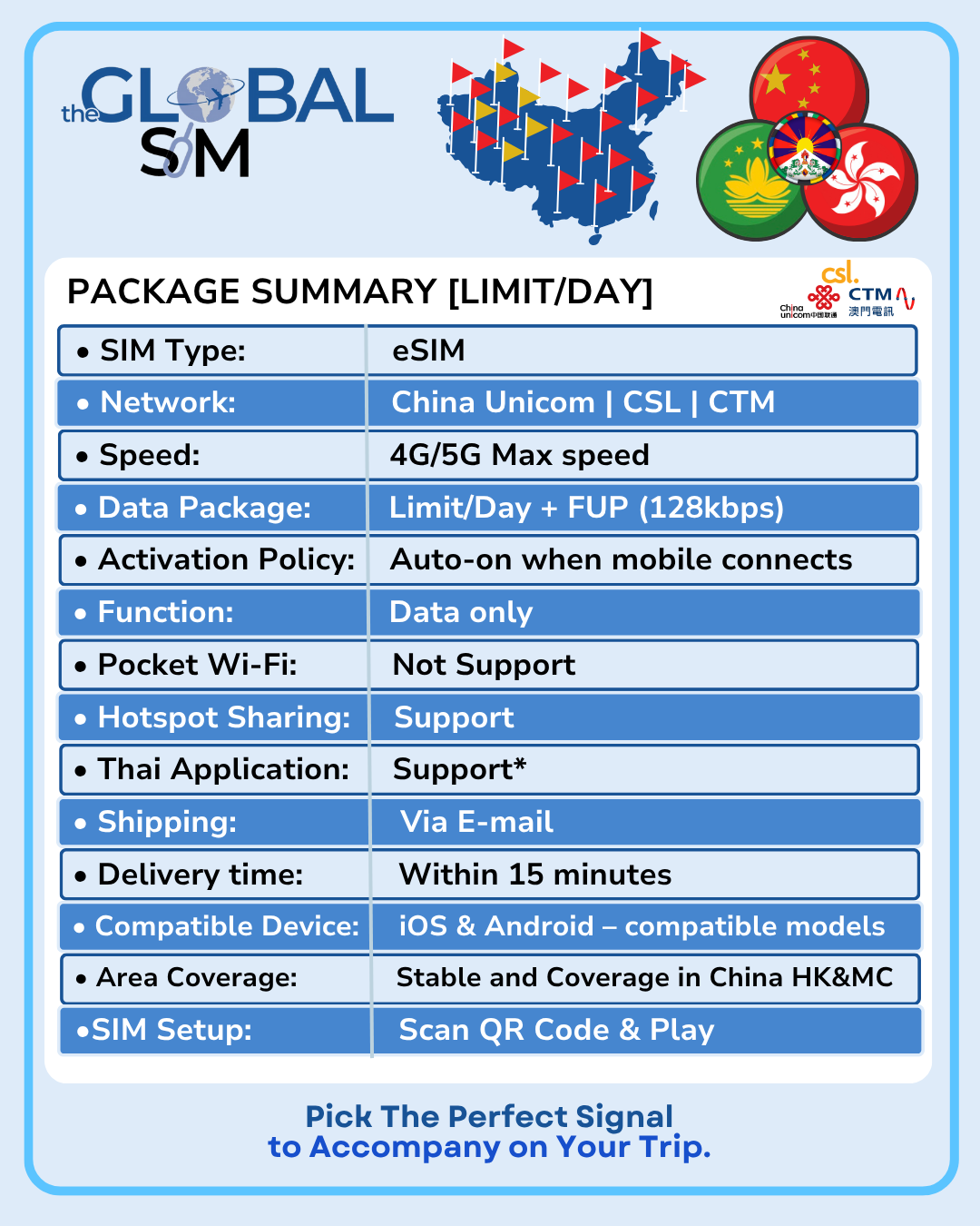 • Network: China Unicom (CN) | CSL (HK) | CTM (Macao)