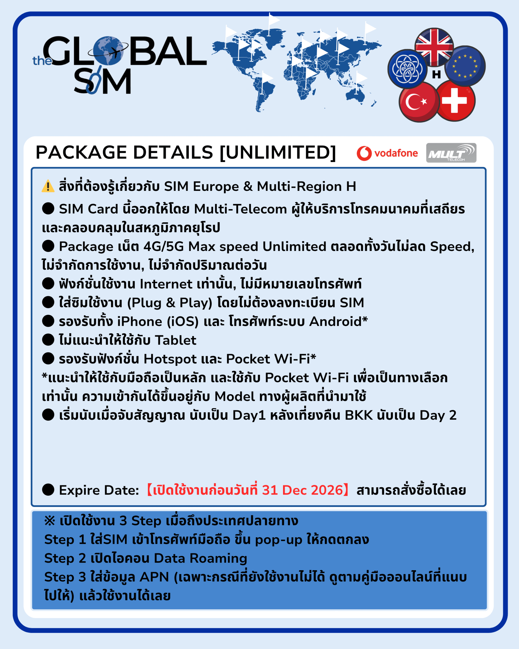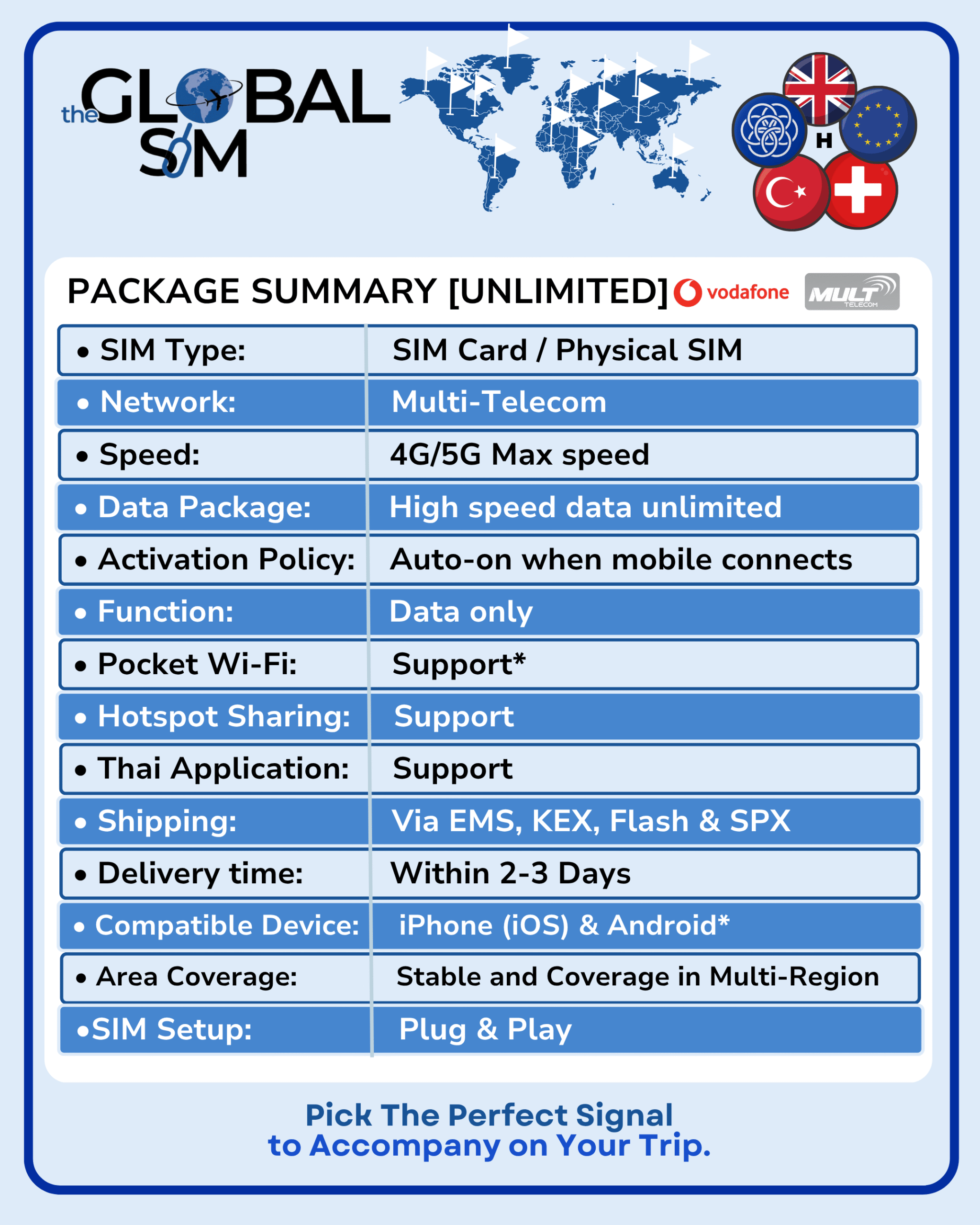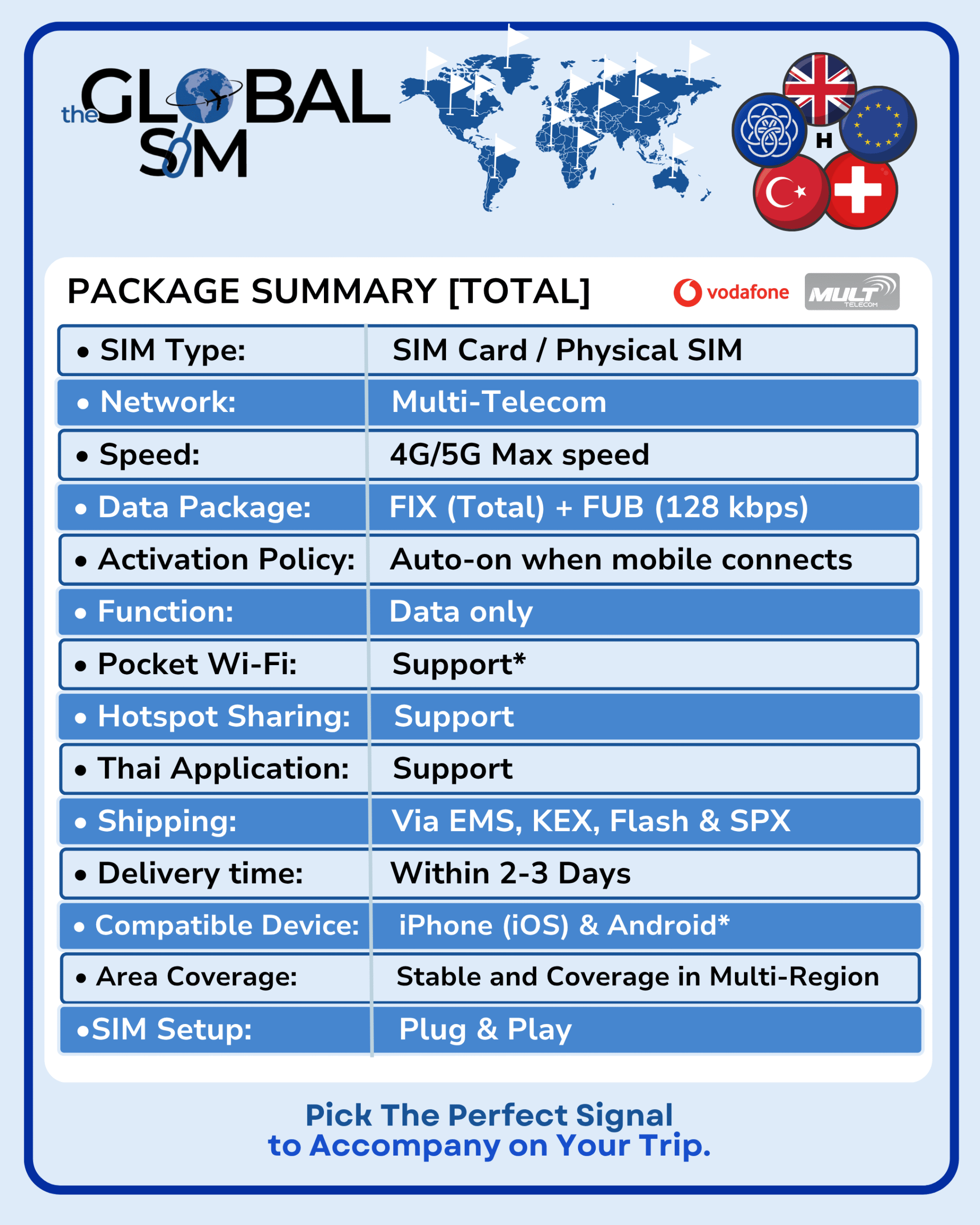 EU, SWZ, TUK& UK SIM Vodafone + Call