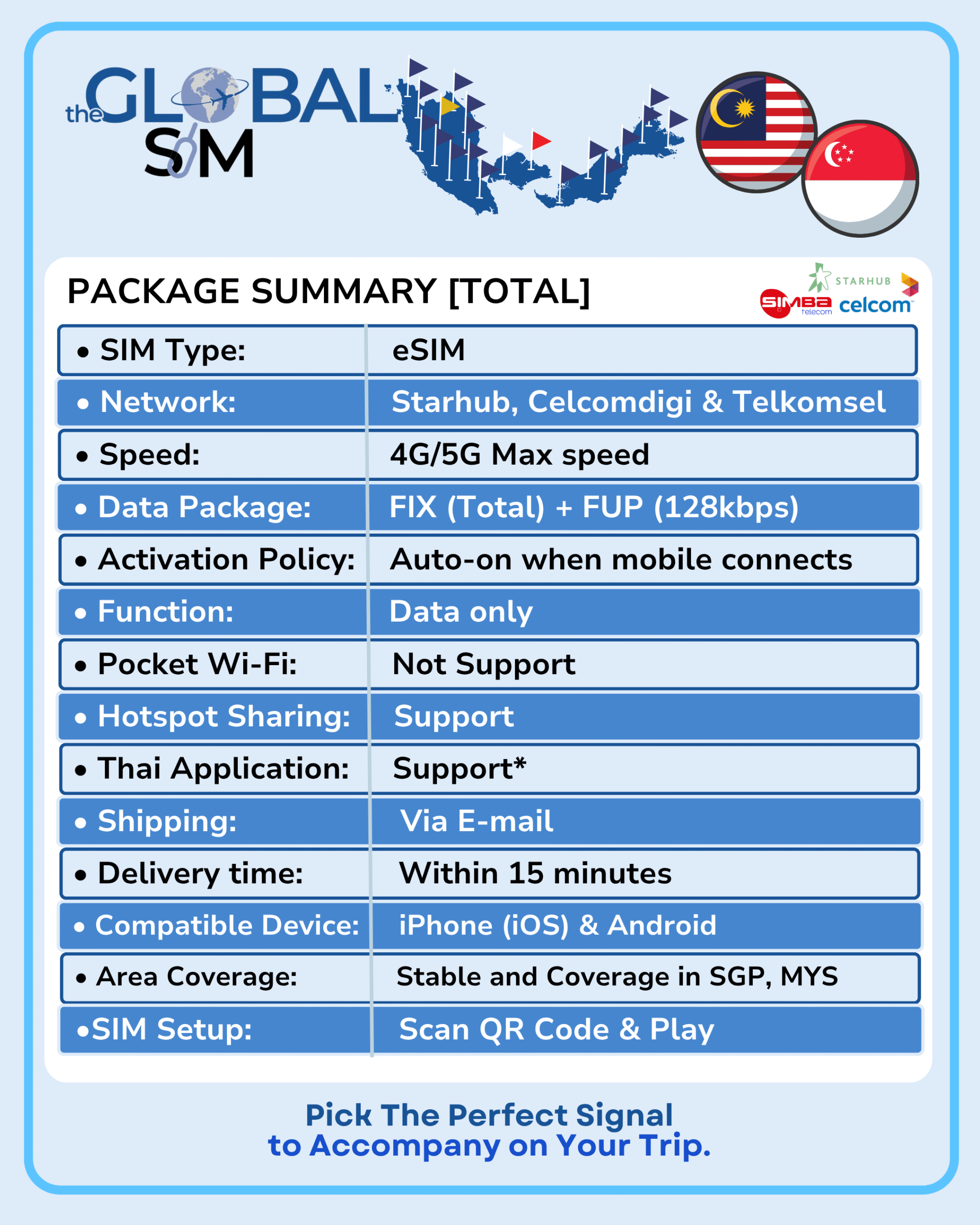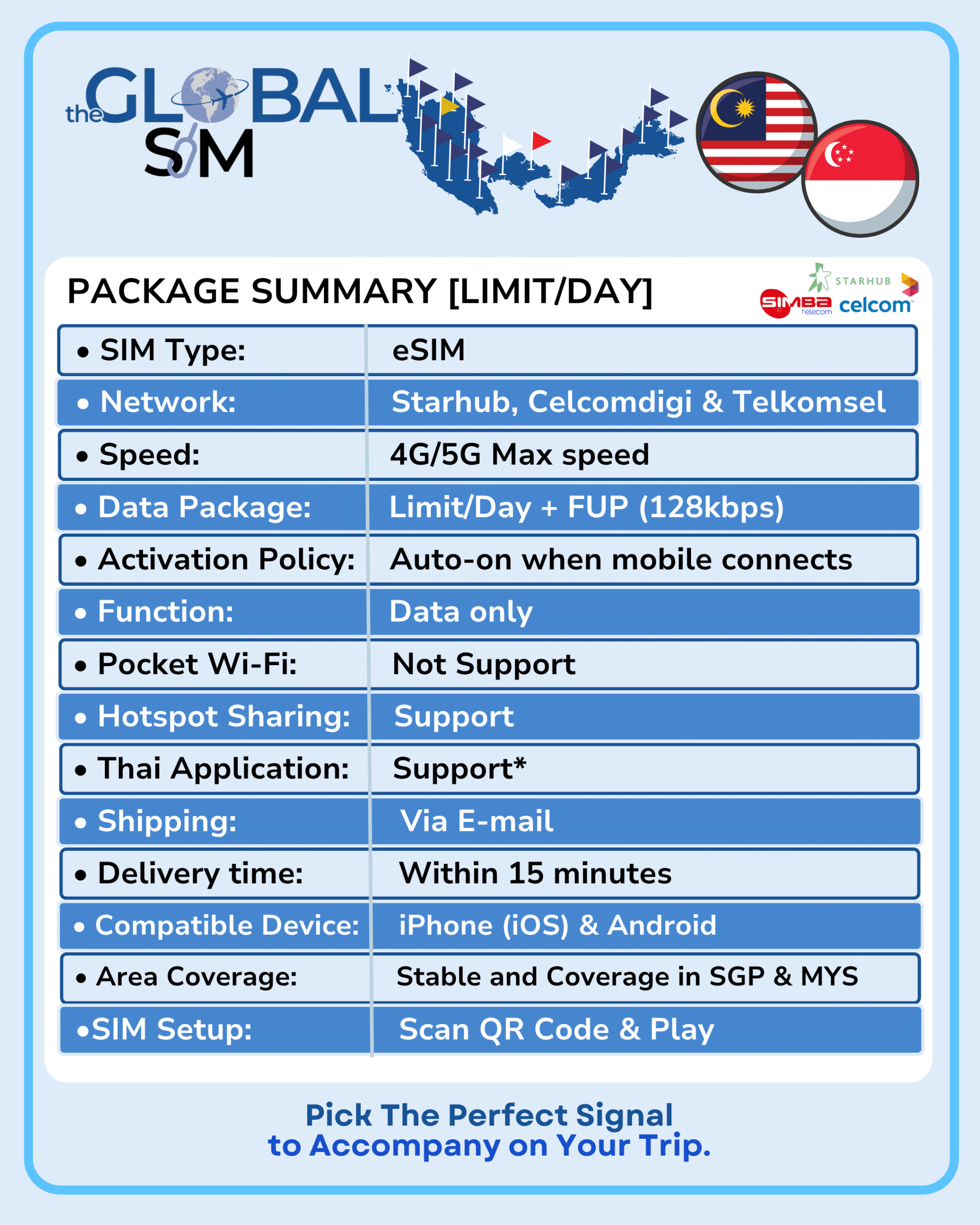 • Area Coverage: Stable and Coverage in Singapore & Malaysia