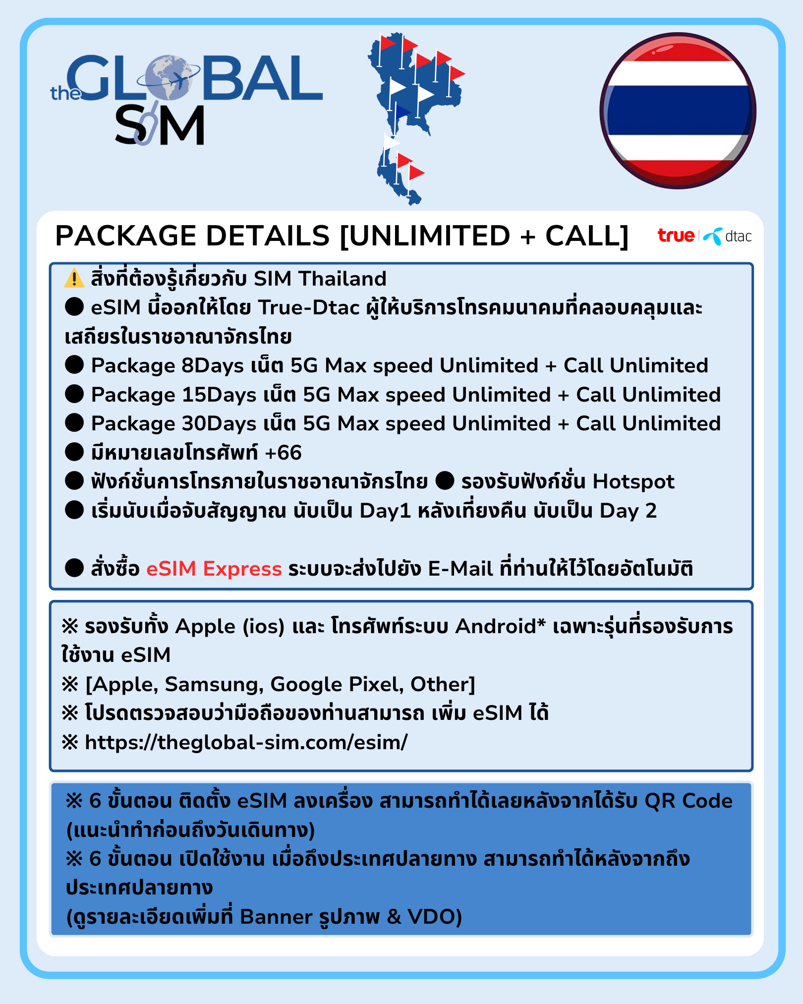 ※ Data Package: High speed data unlimited + Call in Thailand