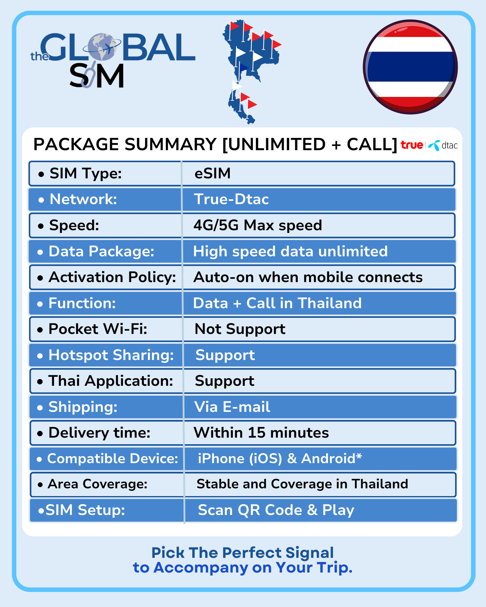 ※ Data Package: High speed data unlimited + Call in Thailand