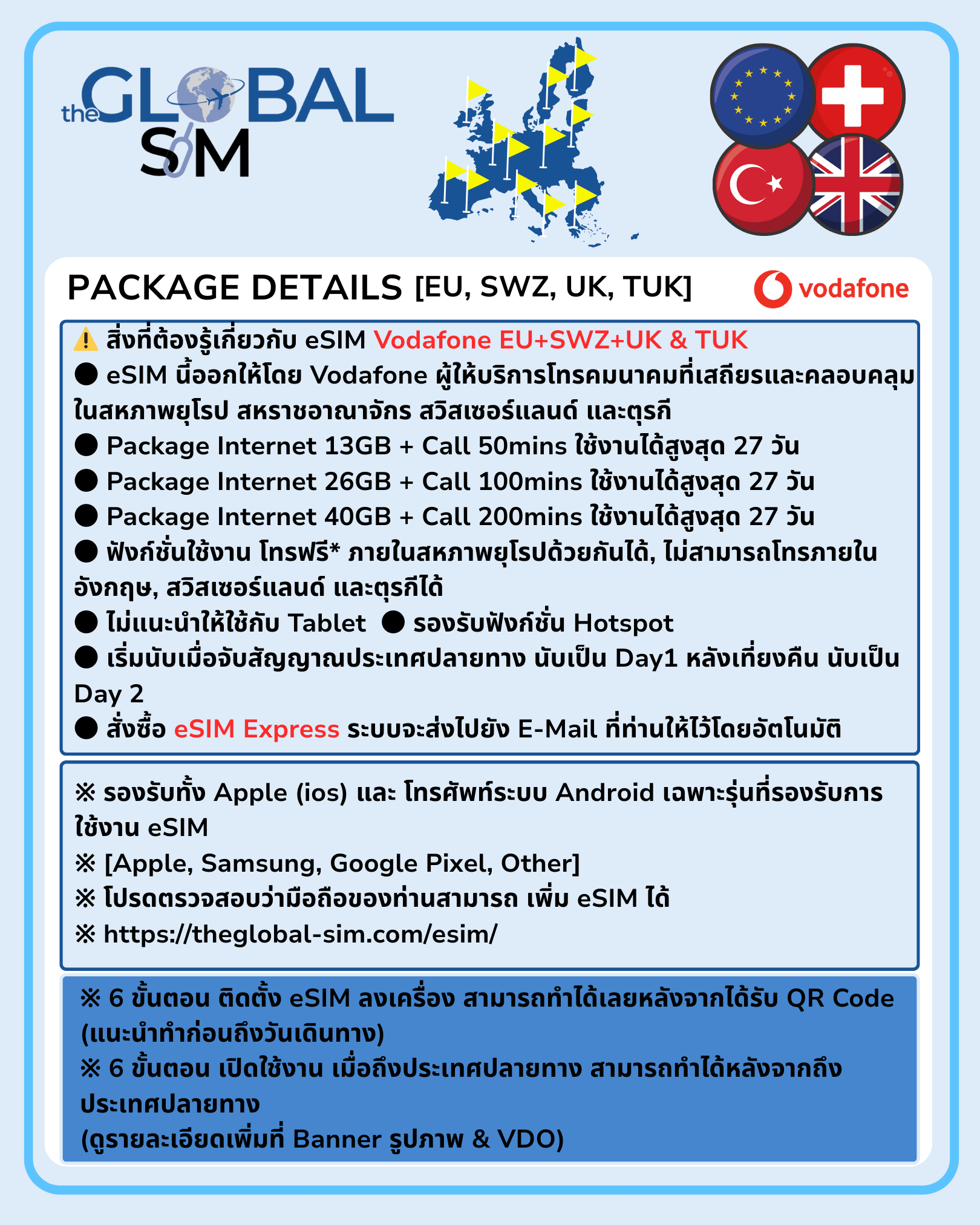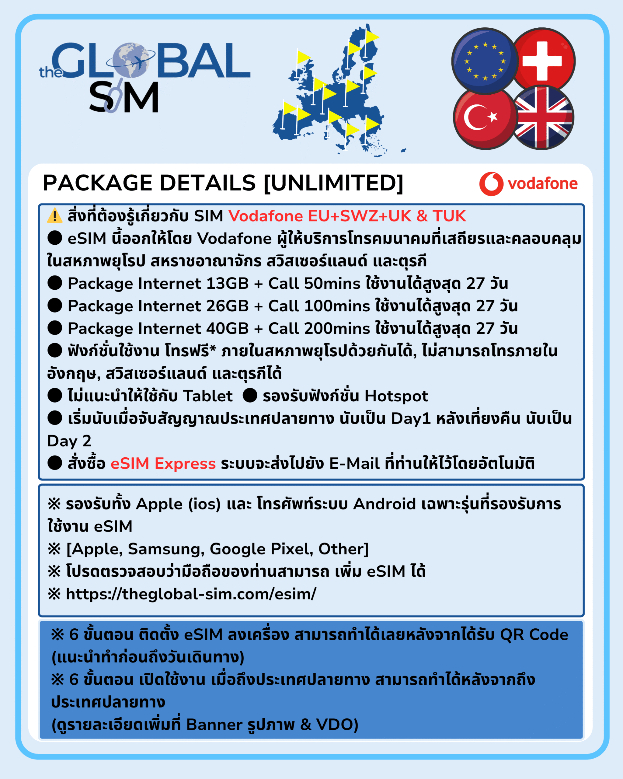 • ฟังก์ชั่น: Data อินเตอร์เน็ต และโทรในสหภาพยุโรปด้วยกัน