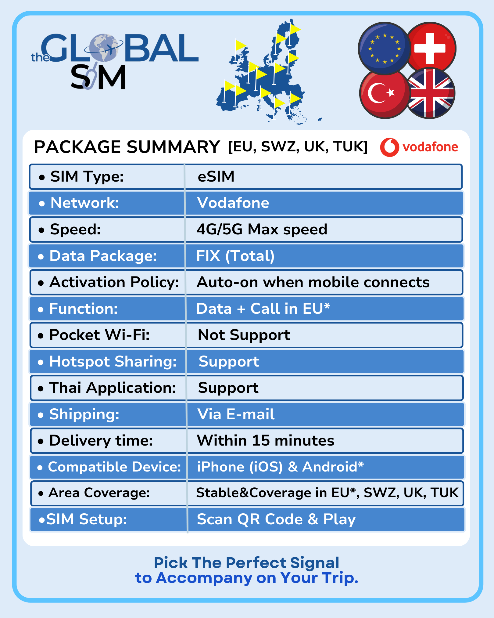 • พื้นที่ครอบคลุม: เสถียรและคลอบคลุมในสหภาพยุโรป, สวิสเซอร์แลยด์, ตุรกี และสหราชอาณาจักร