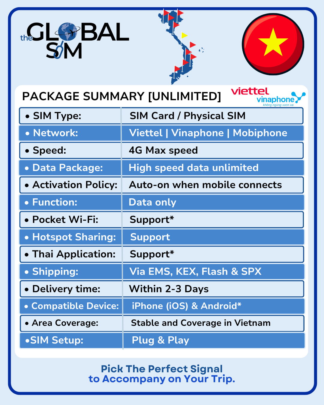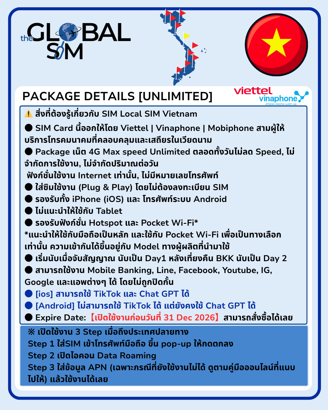 • พื้นที่ครอบคลุม: เสถียรและคลอบคลุมในเวียดนาม